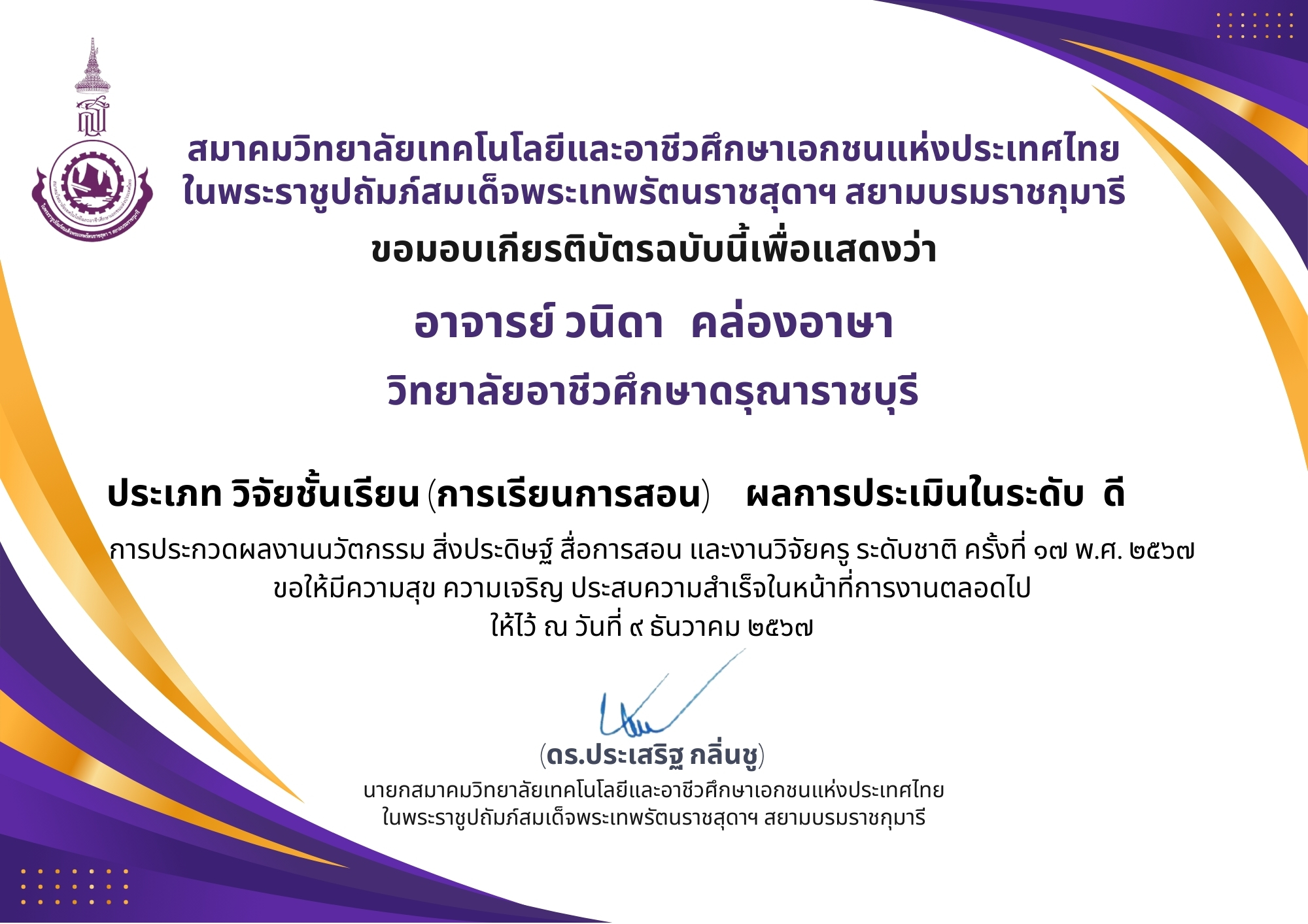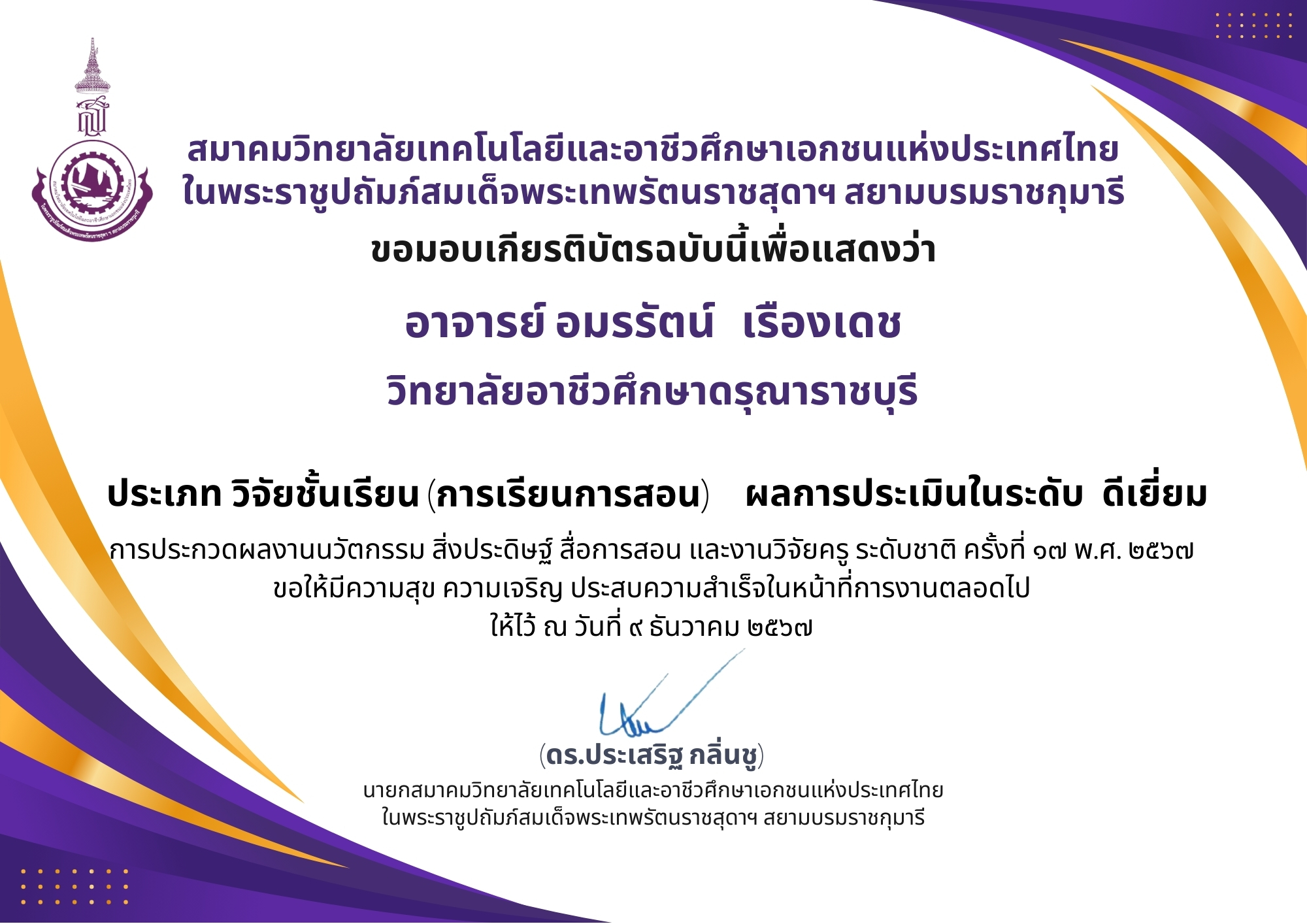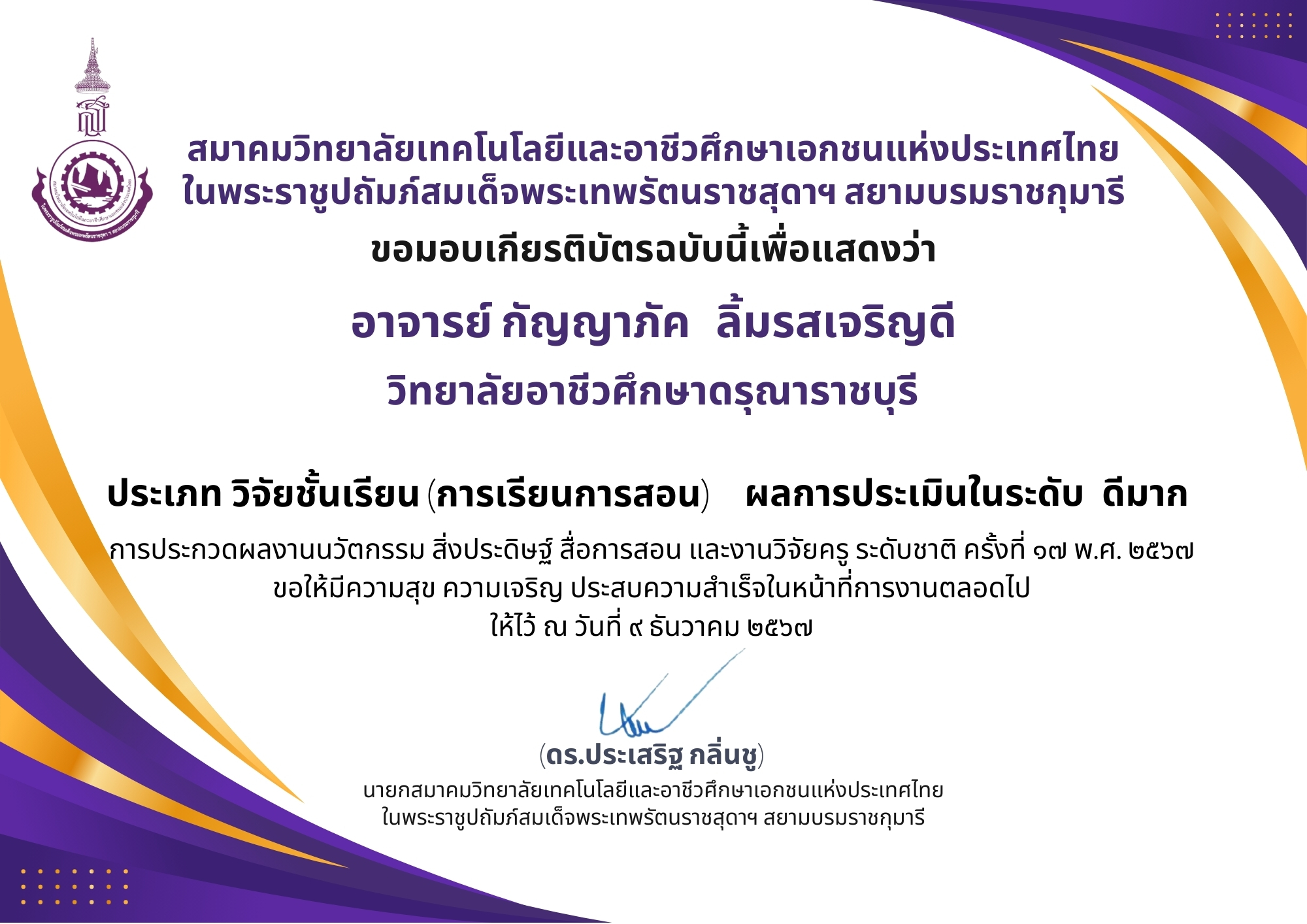 | ผลงานการวิจัยในชั้นเรียนปีการศึกษา 2567 |